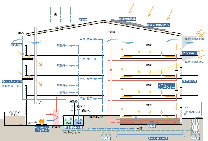 弊社では、省資源・省エネルギー・エコロジーを心掛けながら「地球と建築に融合した提案」を設計信条として設備設計を行っています。 |